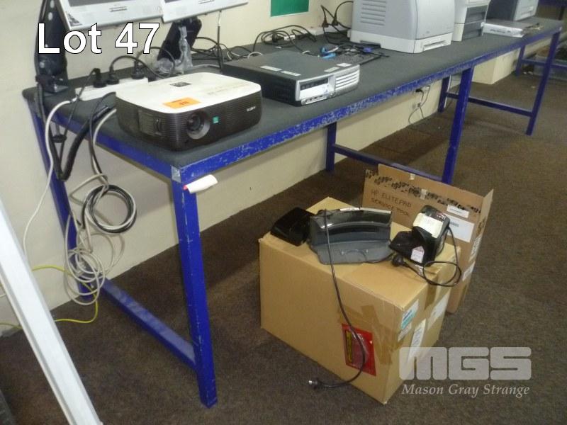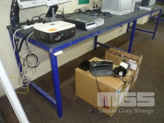 WORKBENCH, STEEL FRAME, PARTICLE BOARD TOP, WITH CARPET, 320 x 78cm