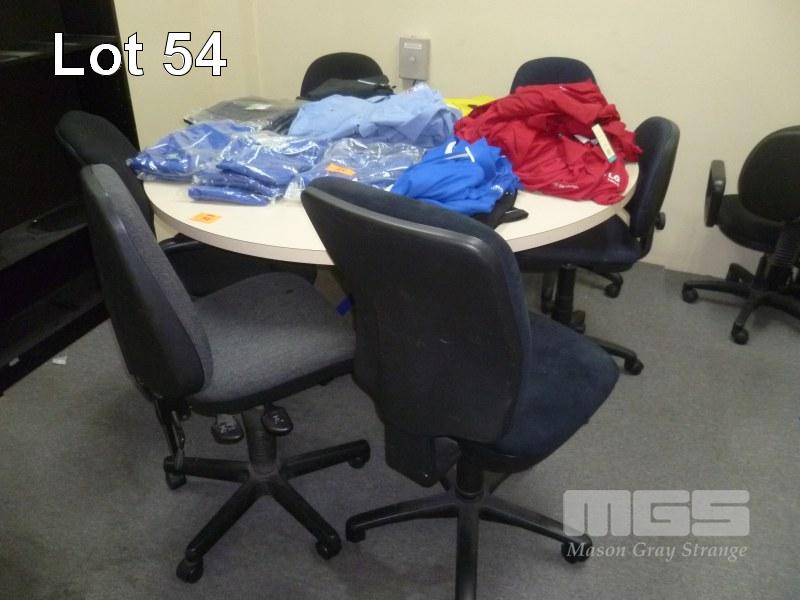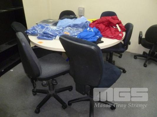ROUND TABLE, 150cm, CREAM LAMINATE TOP, STEEL FRAME, WITH 7 x OFFICE CHAIRS
