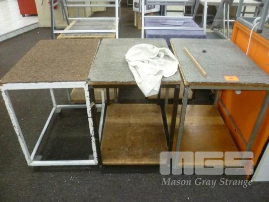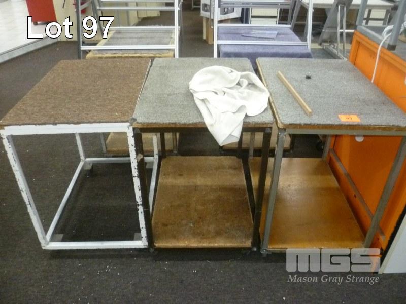 3 x STOCK TROLLEYS, CARPETED TOPS, STEEL FRAME, 80 x 50cm, 2 TIER