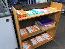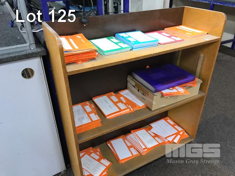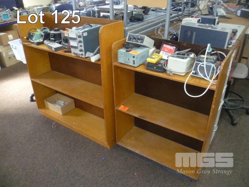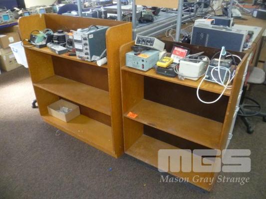 3 x TIMBER STOCK SHELVES, 3 TIER, 100 x 110cm & 75 x 100cm