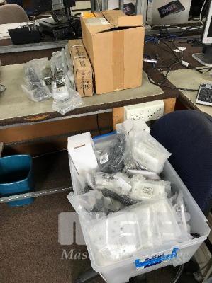 1 x TUB ASST F-TYPE WALL PLATES (APO22/FOX23), HILLS EZY GUTTER MOUNT BRACKETS, 1 x BOX SPAUN SMS 281F COMPACT F-CONNECTOR MULTI SWITCHES