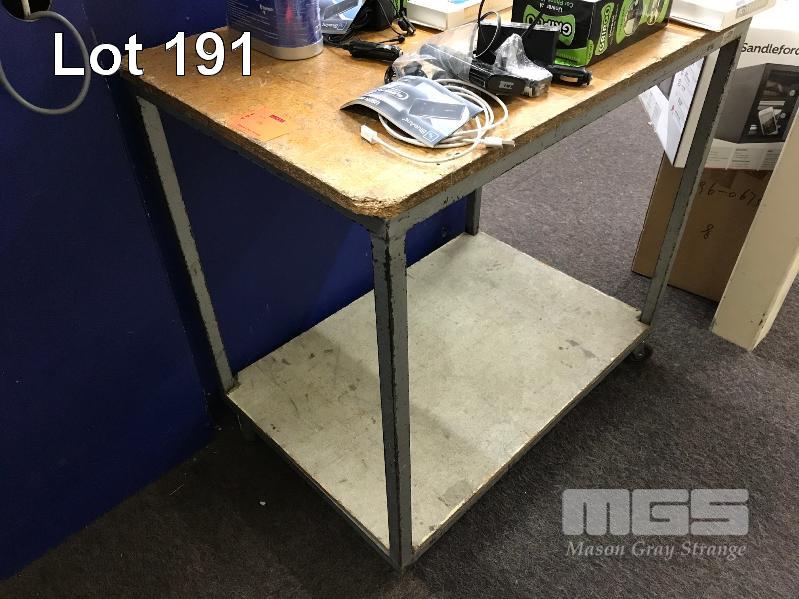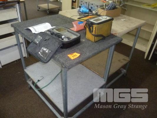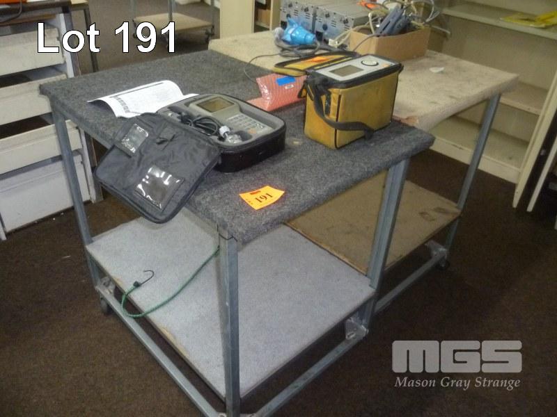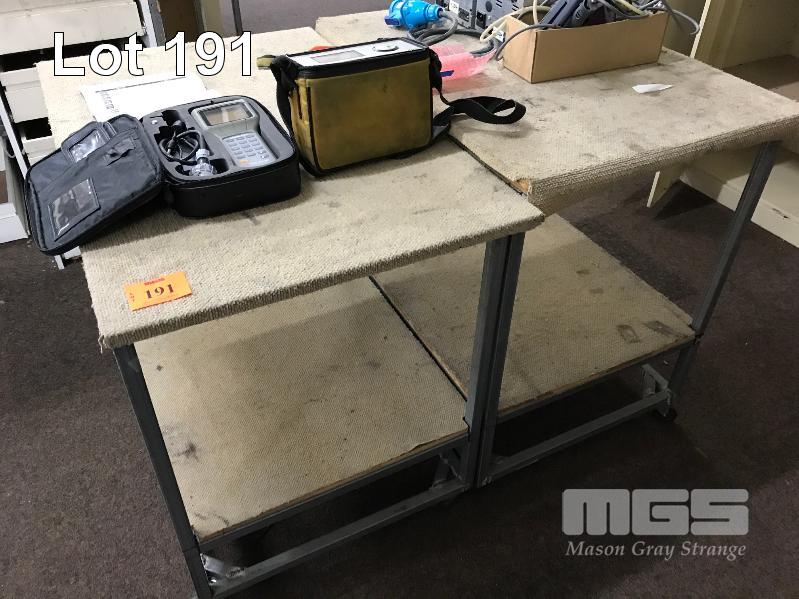 3 x STOCK TROLLEYS, CARPETED TOPS ON 2, STEEL FRAME, 90 x 60cm, 2 TIER