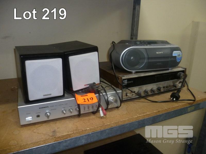 GENERAL STEREO AMPLIFIER & SPEAKERS, SONY AM/FM RADIO & SONY STEREO