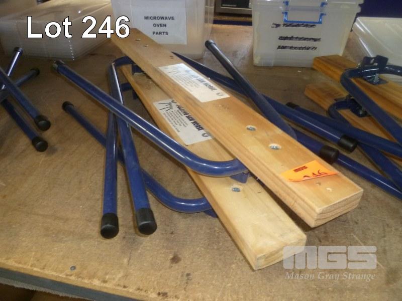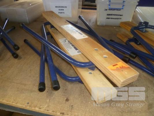PAIR FOLD AWAY SAW HORSES, 900mm, STEEL FRAME TIMBER TOP