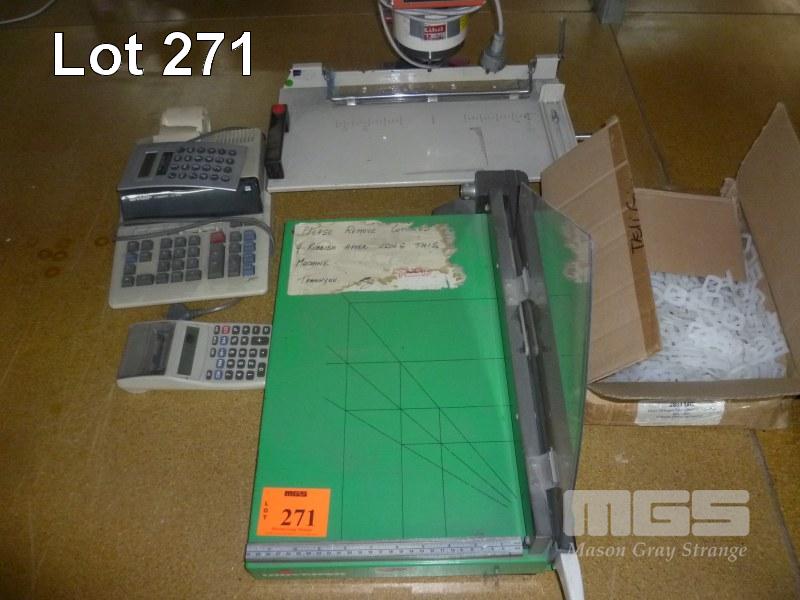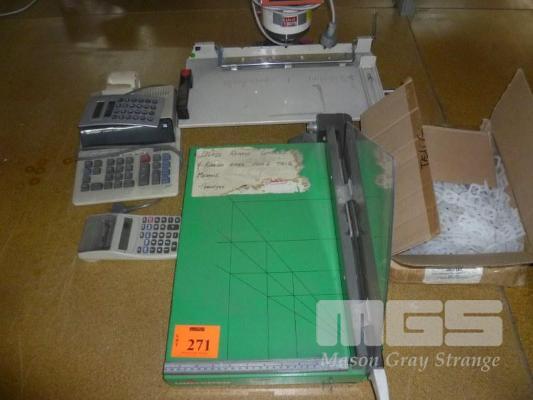 PAPER GUILLOTINE, 2 x SHARP ADDING MACHINES & HOLE PUNCH UNIT