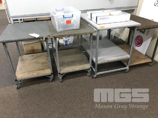 4 x STOCK TROLLEYS, CARPETED TOPS, STEEL FRAME, 2 TIER