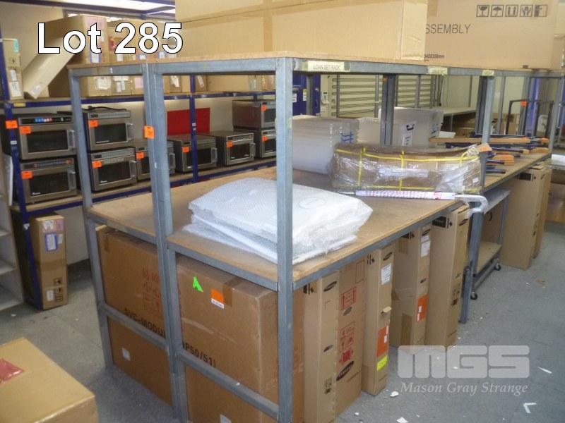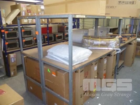 2 x LARGE SHELF UNITS, STEEL FRAME, CHIPBOARD SHELVES, 4.1(L) x 1.8(H) x 0.8m(W)