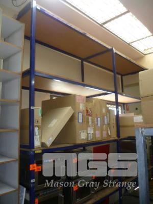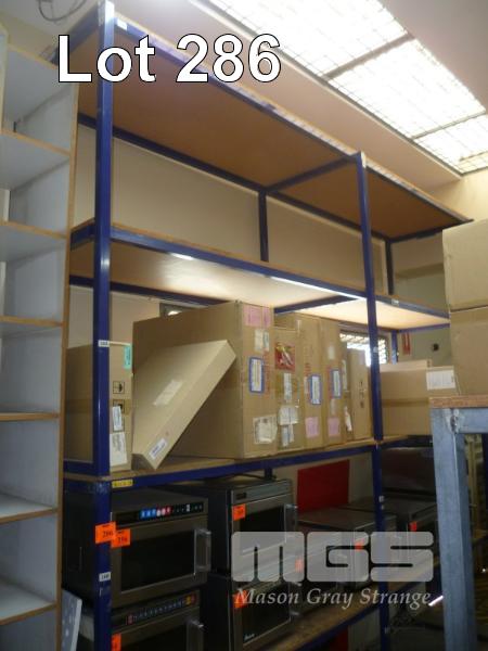 2 x SHELF UNITS, STEEL FRAME, CHIPBOARD SHELVES, 4.1(L) x 1.8(H) x 0.8m(W), BLUE FRAME