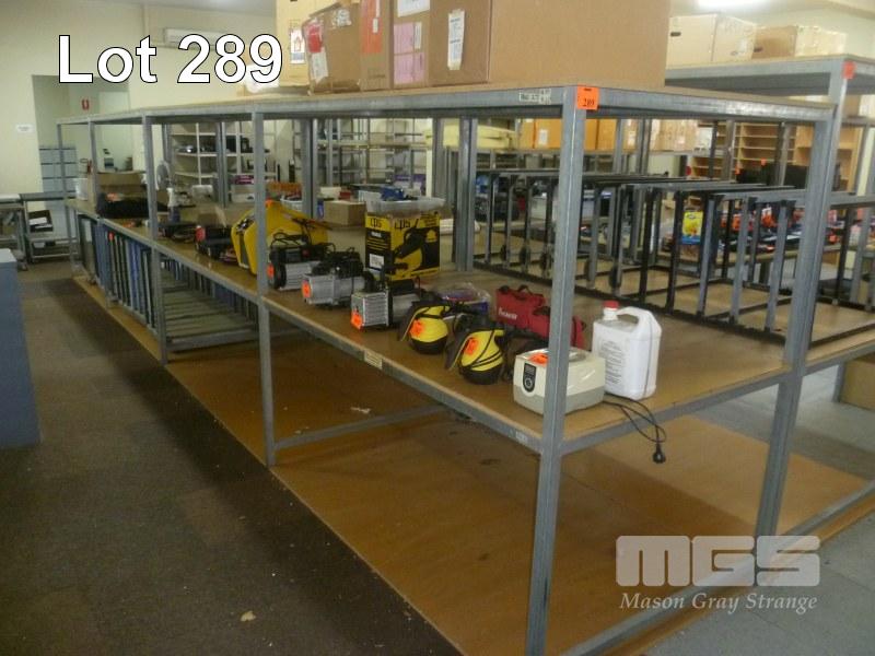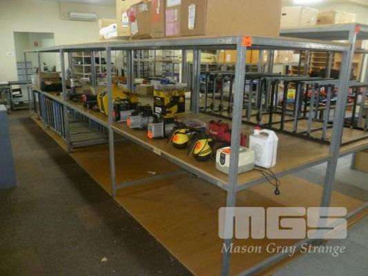 2 x STORAGE RACKS, STEEL FRAME, CHIPBOARD SHELVES, 4.2(L) x 1.8(H) x 1.2m(W)