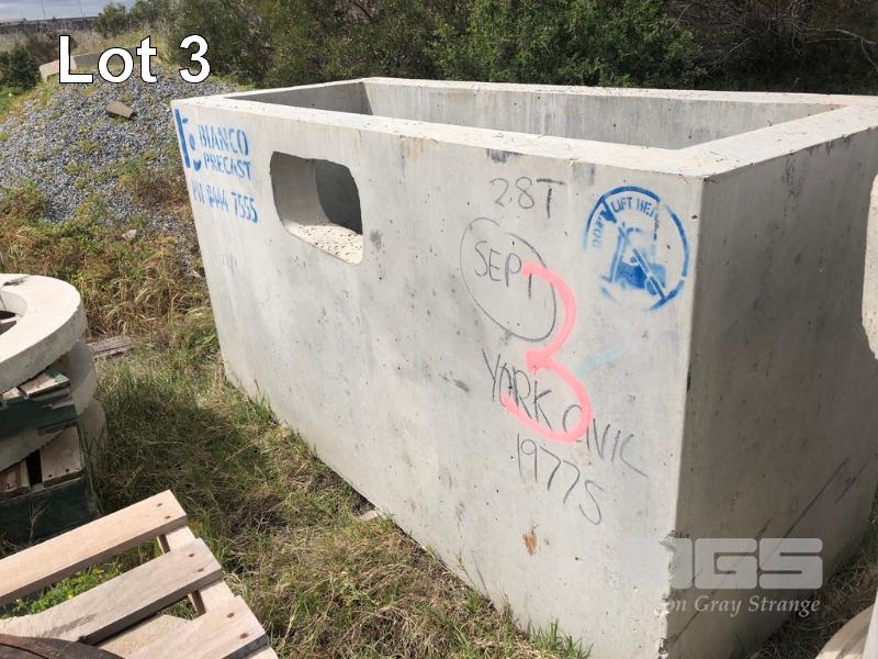 BIANCO CONCRETE CULVERT, 1200 x 300mm & 2 x CONCRETE PIT BOXES, 2200 x 900mm,