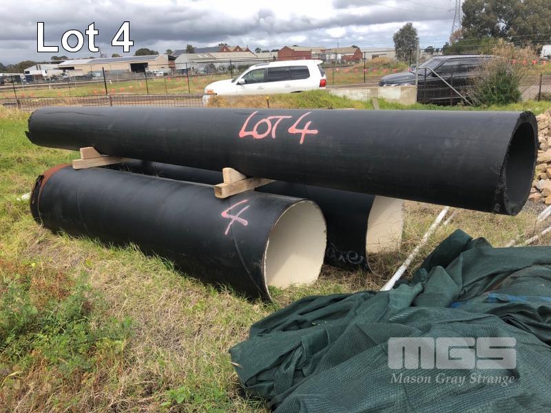 POLY PIPE, BLACK, 5m (L), 500mm DIAMETER, 50mm THICK & 2 x CONCRETE LINED STEEL PIPES, 3m (L), 700mm DIAMETER