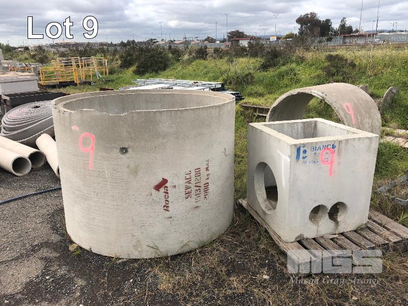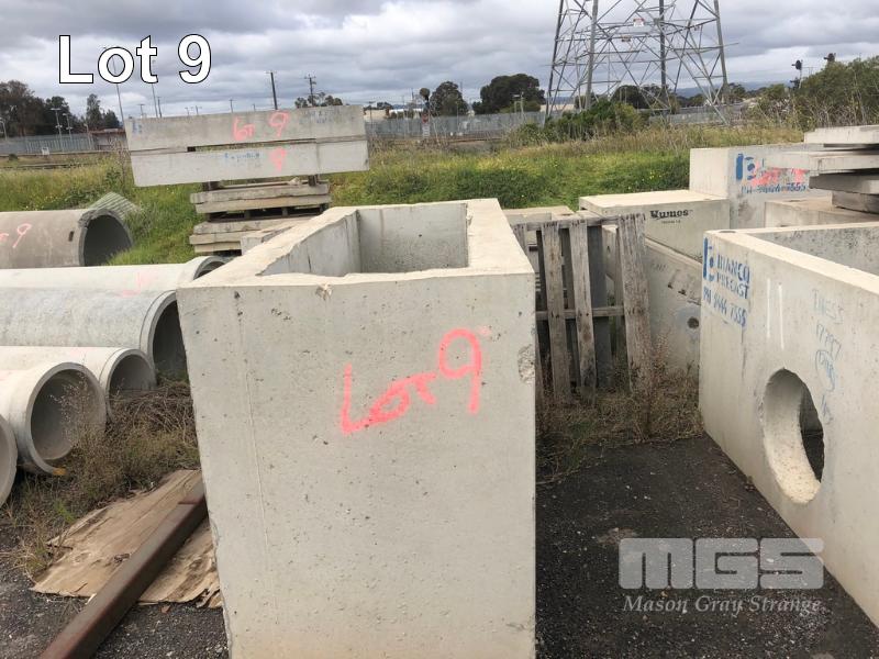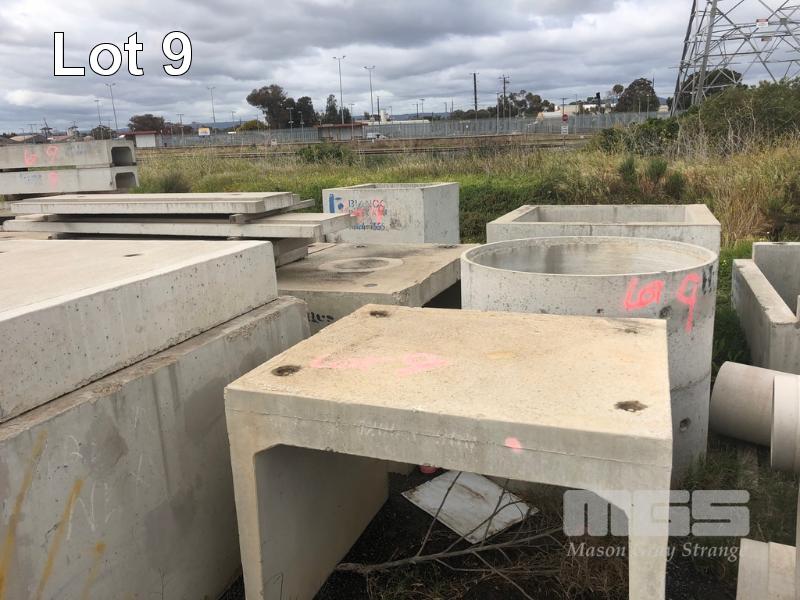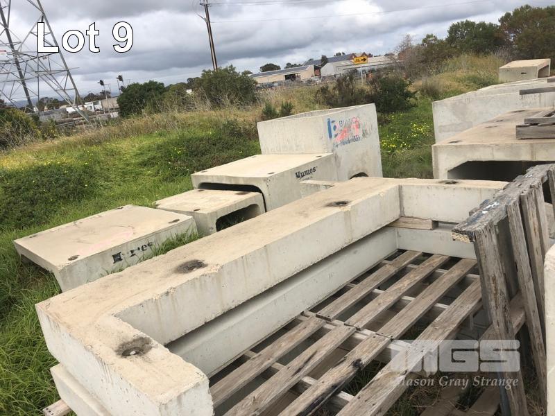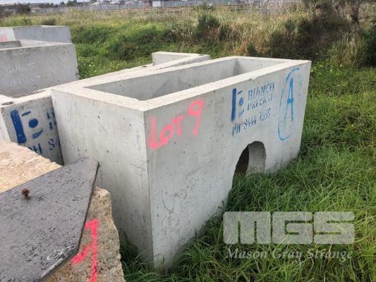ASSORTED CONCRETE CULVERTS, PIT BOXES, ROUNDS, STORMWATER INLETS, HUGE QUANTITY, GREAT LOT, HUMES, BIANCO, AS MARKED
