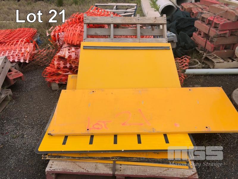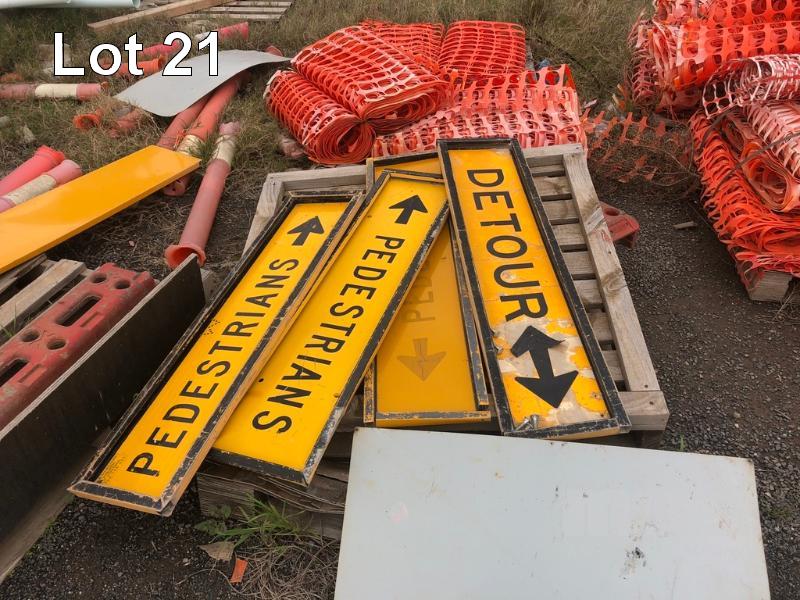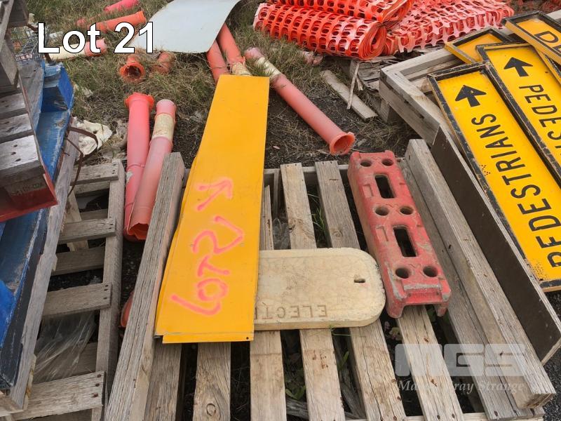 ASSORTED ROAD SIGNAGE & ORANGE SAFETY BARRIER PVC ROLL OUT, 5 x PALLETS