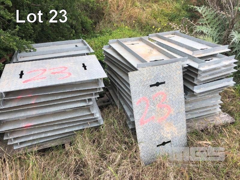 STEEL GALV GRID PIT COVERS &GALV STEEL PLATE COVERS, APPROX 80 & PVC COVERS