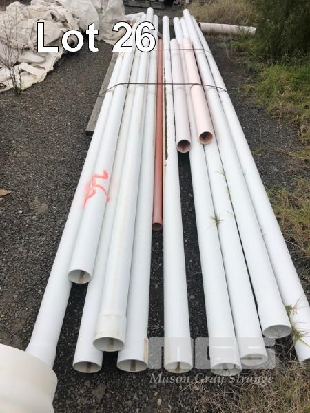 WHITE REINFORCED PVC PIPE, 6 x 6m (L), 300mm PLUS 3 x OFFCUTS WITH 100mm SEWAGE PIPE & CONDUIT WITH BENDS, 100mm