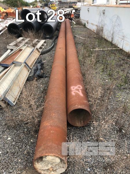 2 x LENGTHS THREADED STEEL PIPE, 300mm DIAMETER, 10mm THICK, UP TO 12m WITH SOME HOLES