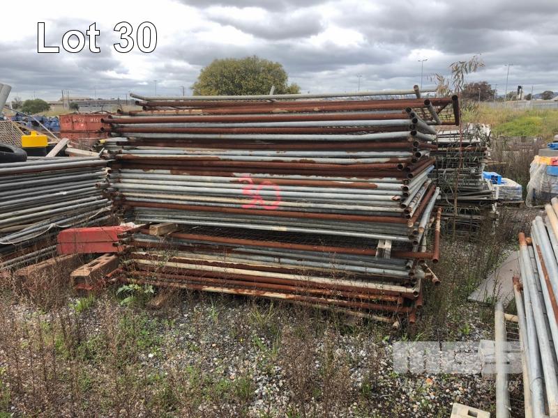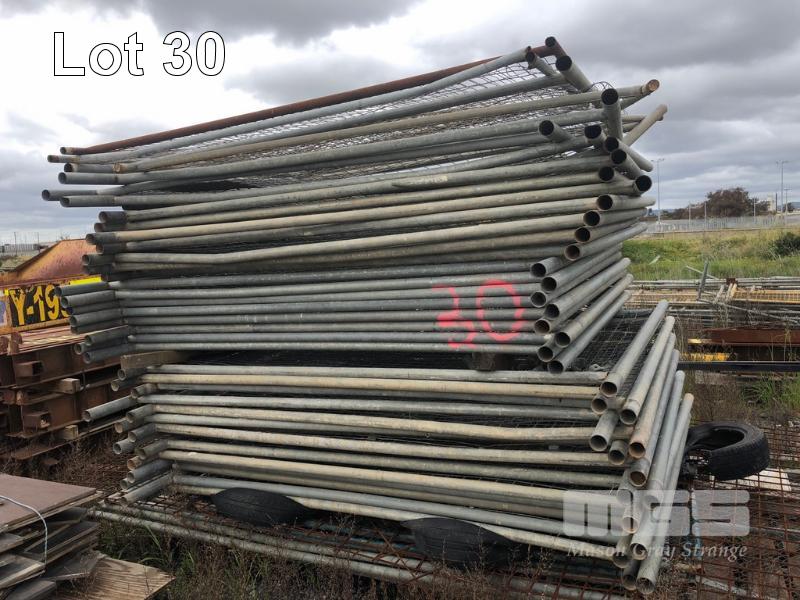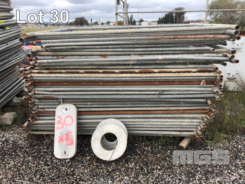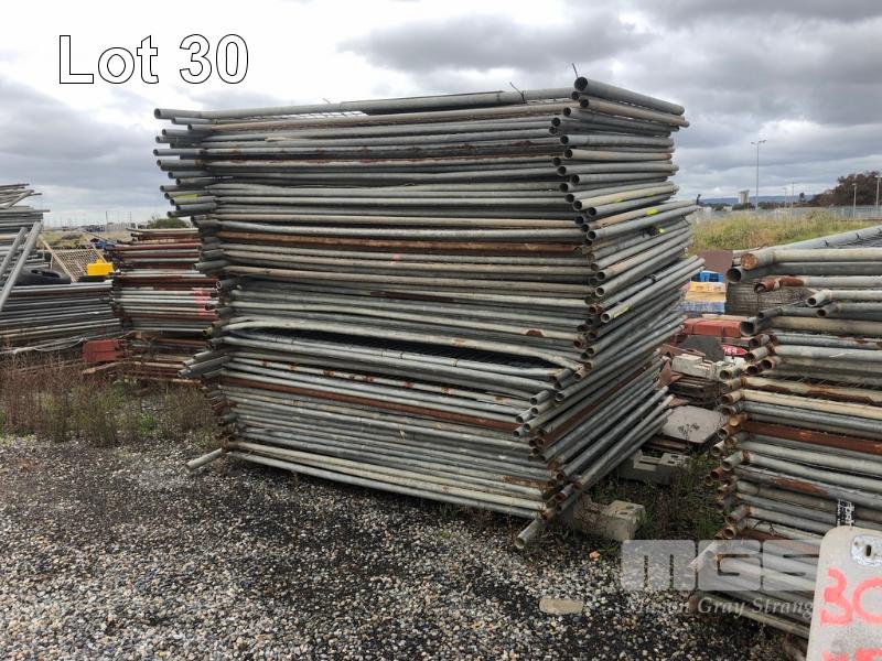 LARGE QUANTITY TEMPORARY FENCE PANES, 5 X STACKS GALV & MESH STEEL, APPROX 250 x PIECES, 2400 x 1800mm & 4 x PALLETS BLUE STANDS