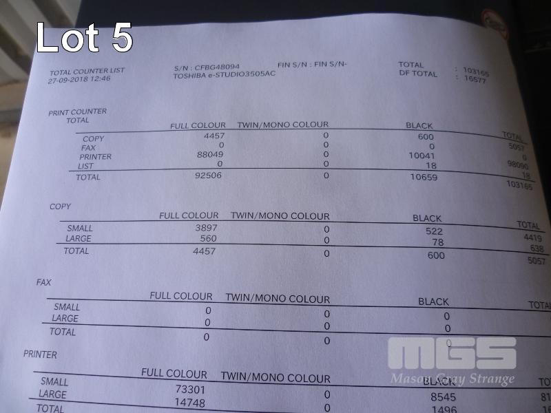 PHOTOCOPIER, TOSHIBA e-STUDIO 3505AC COLOUR DIGITAL, ADF, PRINTER USB & NETWORK PORTS, 92,506 COLOUR & 10,659 B&W COPIES SHOWING (TEST PAGE ATTACHED) S/N:CFBG48094