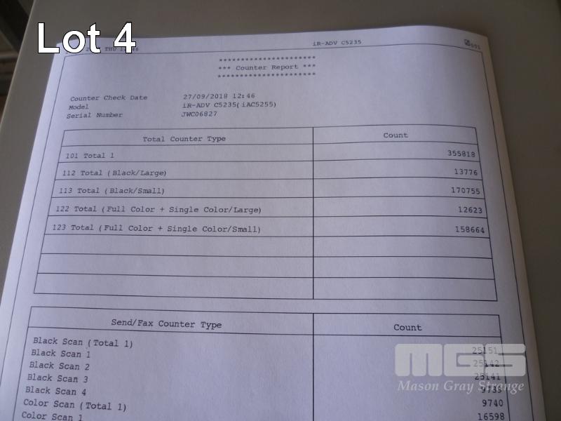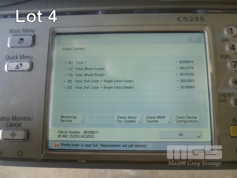 PHOTOCOPIER, CANON IMAGE RUNNER ADVANCE C5235 COLOUR DIGITAL, ADF, PRINTER USB & NETWORK PORTS, SPARE TONER, 171,287 COLOUR & 184,531 B&W COPIES SHOWING (TEST PAGE ATTACHED) S/N:JWC06827
