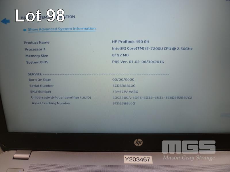 LAPTOP, HP PROBOOK 450 G4 (Z3Y45PA), CORE i5 7200U (7TH GEN) @ 2.5GHz, 8GB DDR4 RAM, 256GB SSD, DVD-RW, 15.6" WIDESCREEN (1366x768), INTEL HD VIDEO, Wi-Fi, WINDOWS 10 PRO INSTALLED, POWER SUPPLY & CARRY BAG S/N:5CD6388L0G