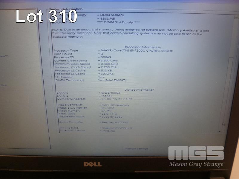 LAPTOP, DELL INSPIRON 15 3000, CORE i5 7200U (7TH GEN) @ 2.5GHz, 8GB DDR4 RAM, 1TB SATA HDD, DVD-RW, 15.6" WIDESCREEN (1920x1080), INTEL HD VIDEO, Wi-Fi, WINDOWS 10 HOME INSTALLED, RECOVERY PARTITION, DOCKING STATION & POWER SUPPLY S/N:J9CKSJ2