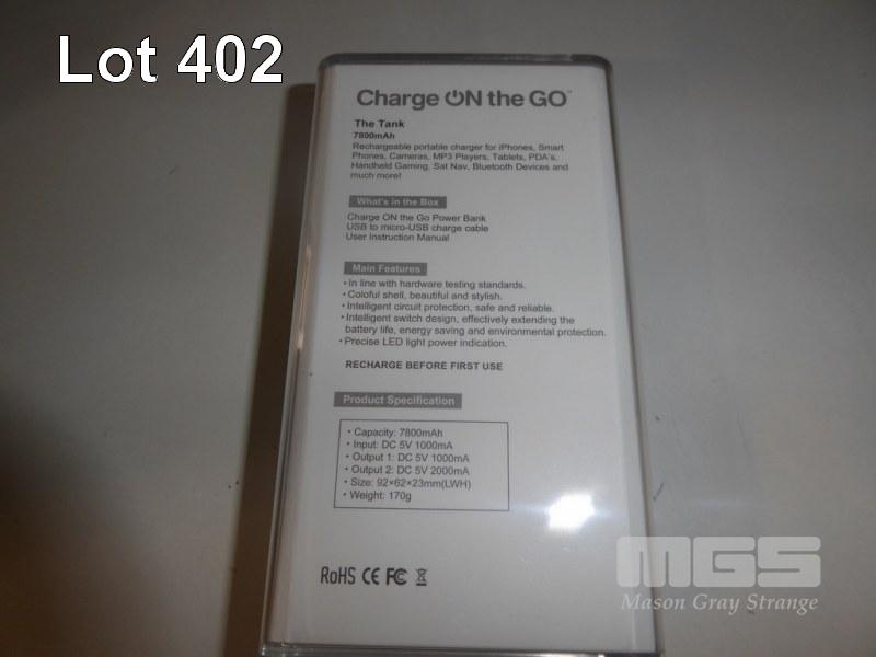 10 x CHARGE ON THE GO 7800mAh PORTABLE POWER CHARGERS, THE TANK, BLACK