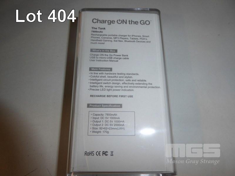 10 x CHARGE ON THE GO 7800mAh PORTABLE POWER CHARGERS, THE TANK, WHITE