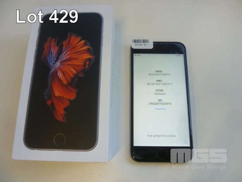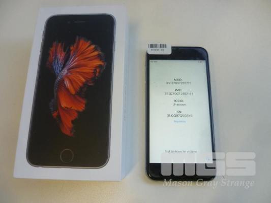 APPLE iPHONE 6S, 16GB, SPACE GRAY, MODEL A1688 WITH CHARGER & CABLE S/N:DNQQ97Q5GRY5