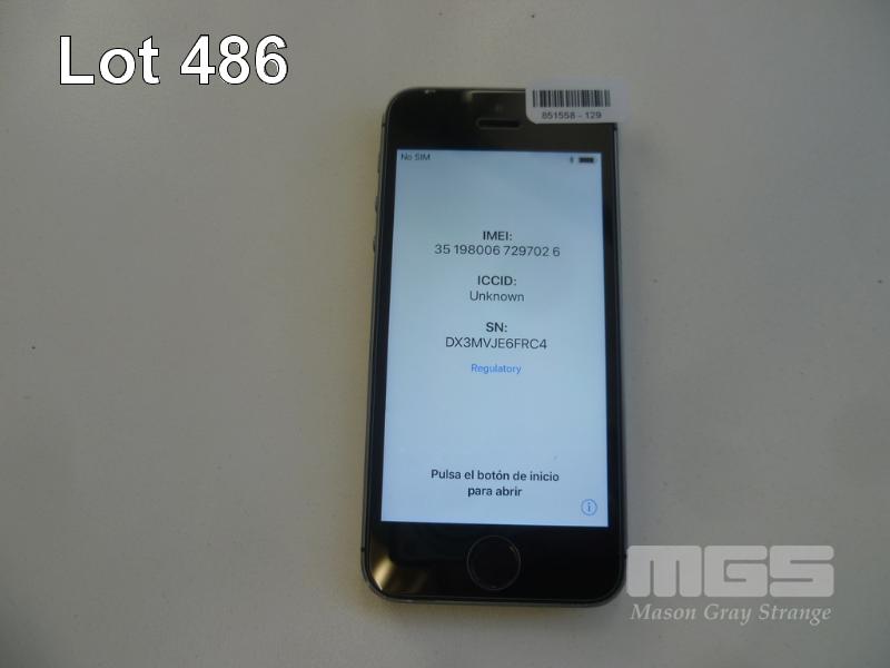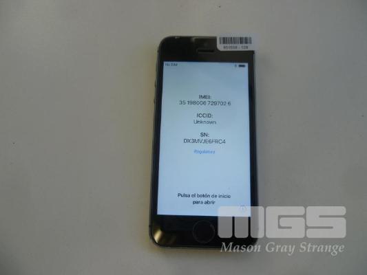 APPLE iPHONE 5S, 16GB, SPACE GRAY, MODEL A1530 (NO CHARGER, NO CABLE) S/N:DX3MVJE6FRC4