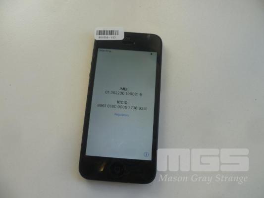 APPLE iPHONE 5, 16GB, BLACK, MODEL A1429 (NO CHARGER, NO CABLE) IMEI 013622001060215