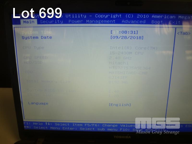 LAPTOP, TOSHIBA SATELLITE PRO L770 (PSK3XA-01500H), CORE i5 2430M (2ND GEN) @ 2.4GHz, 8GB DDR3 RAM, 750GB SATA HDD, BLU-RAY, 17.3" WIDESCREEN (1600x900), 1GB NVIDIA GEFORCE GT 525M VIDEO, Wi-Fi, WINDOWS 7 PRO INSTALLED W/ LICENSE, RECOVERY PARTITION & POWER SUPPLY S/N:XB071993R