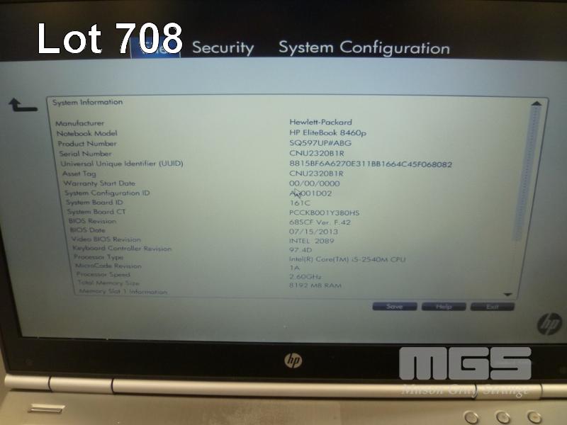 LAPTOP, HP ELITEBOOK 8460p (SQ597UP), CORE i5 2540M (2ND GEN) @ 2.6GHz, 8GB DDR3 RAM, 256GB SSD, DVD-RW, 14" WIDESCREEN (1600x900), INTEL VIDEO, Wi-Fi, BLUETOOTH, WINDOWS 7 PRO INSTALLED W/ LICENSE & POWER SUPPLY S/N:CNU2320B1R