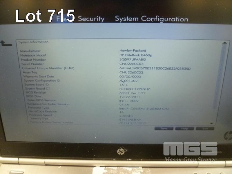 LAPTOP, HP ELITEBOOK 8460p (SQ597UP), CORE i5 2540M (2ND GEN) @ 2.6GHz, 8GB DDR3 RAM, 256GB SSD, DVD-RW, 14" WIDESCREEN (1600x900), INTEL VIDEO, Wi-Fi, BLUETOOTH, WINDOWS 7 PRO INSTALLED W/ LICENSE & POWER SUPPLY S/N:CNU2260C03