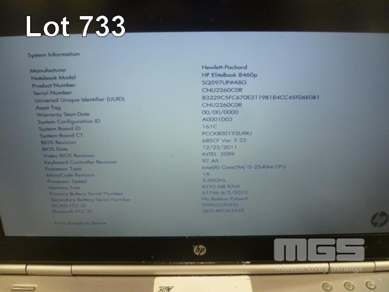 LAPTOP, HP ELITEBOOK 8460p (SQ597UP), CORE i5 2540M (2ND GEN) @ 2.6GHz, 8GB DDR3 RAM, 256GB SSD, DVD-RW, 14" WIDESCREEN (1600x900), INTEL VIDEO, Wi-Fi, BLUETOOTH, WINDOWS 7 PRO INSTALLED W/ LICENSE & POWER SUPPLY (BIOS PASSWORD PROTECTED) S/N:CNU2260C0R