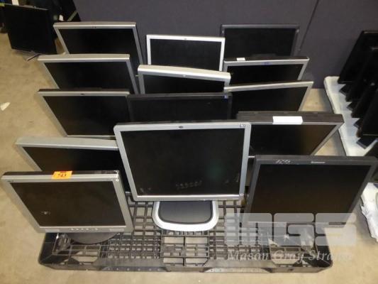 14 x MONITORS, MOSTLY HP, 15" - 19" LCD (NO CABLES)