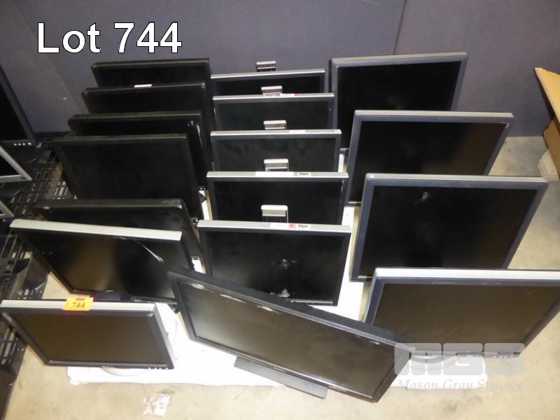 18 x MONITORS, MOSTLY DELL, 15" - 19" LCD (NO CABLES)