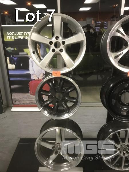 3 x NEW DISPLAY ALLOY RIMS, PERFORMANCE 19 x 8", 18 x 8', 17 x 7" & STAND