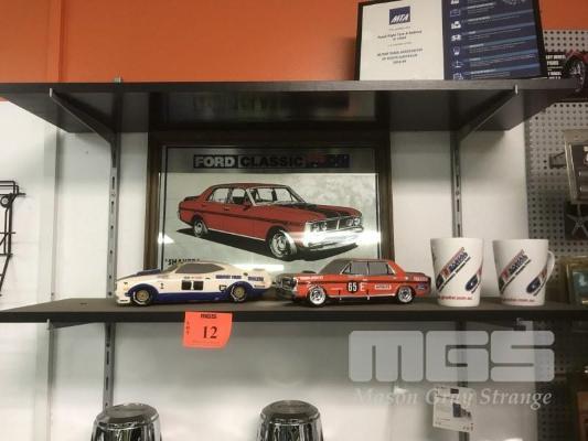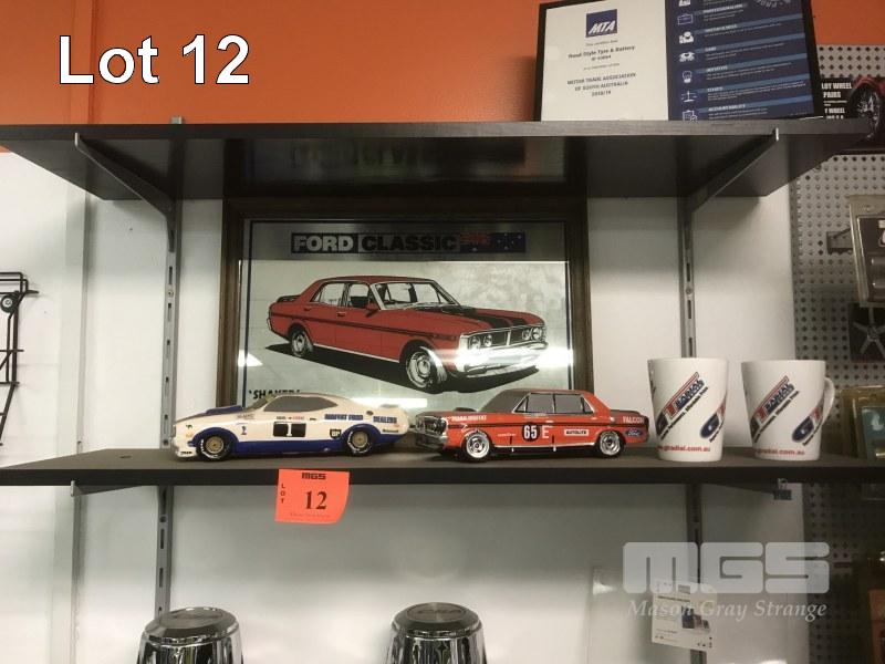 PAIR FALCON PORCELAIN MODELS, XC & XY GT FALCONS & 2 x GT RADIAL CUPS