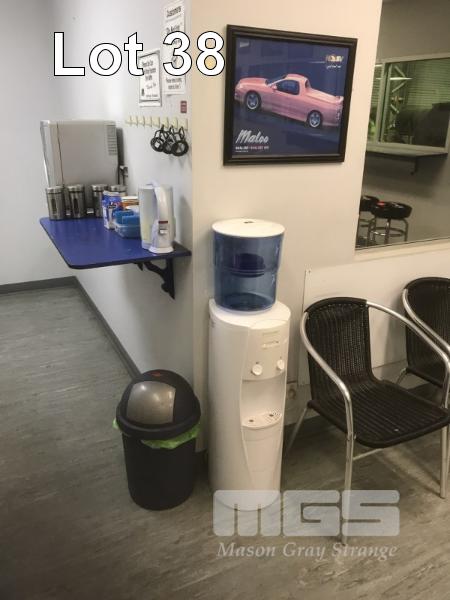 4 x VISITORS CHAIRS & POLAR CLEAR WATER COOLER, KETTLE, ACCESSORIES & KIDS TOY CORNER