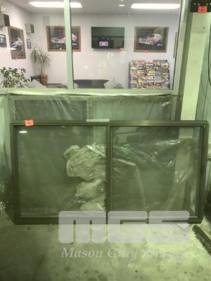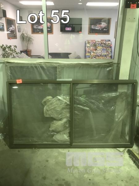 2 x ALUMINIUM FRAME WINDOWS, SLIDING GLASS, 183 x 100cm & 150 x 122cm, BRONZE OLIVE.