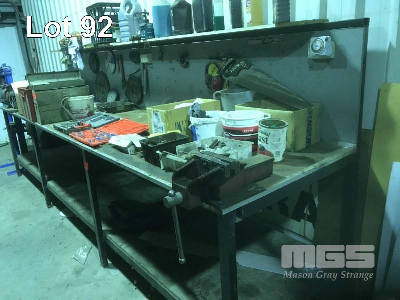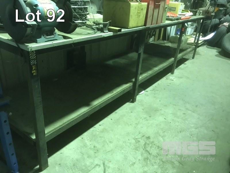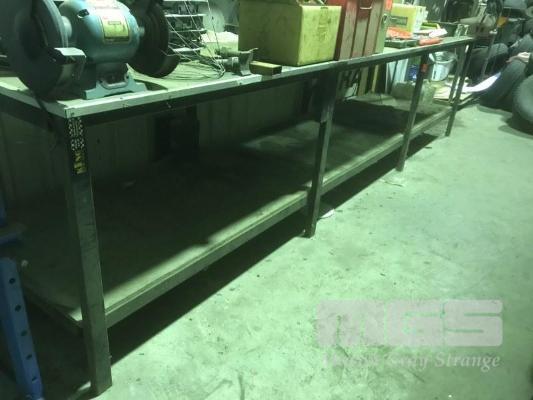 STEEL SHOP BENCH, 2 TIER WITH 6" OFFSET VICE, 4m LONG