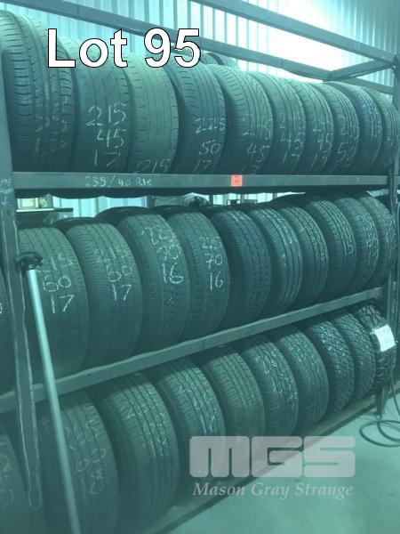 29 (APPROX) x USED TYRES, 215/17, 225/16, 265/17, 265/18, 245/17, 255/17, CONTINENTAL & GOODYEAR, 3 x BAYS