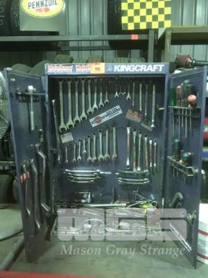 KINGCRAFT TOOL KIT, WALL MOUNT, SPANNERS, SOCKETS, SCREWDRIVERS, ETC