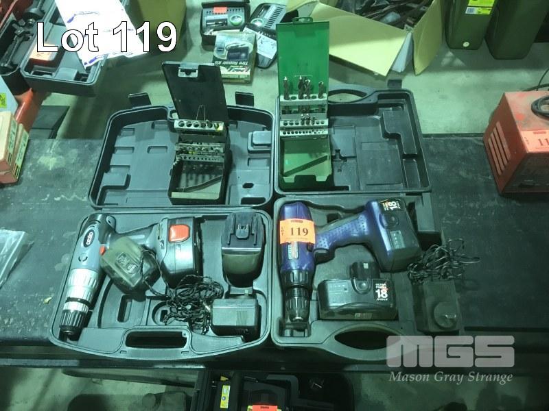 PAIR CORDLESS DRILLS, 18V, OZITO & DRILL SETS