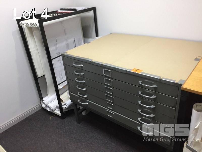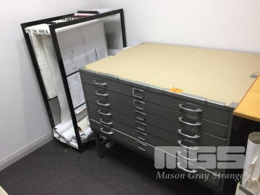 PLAN FILE DRAWER UNIT, 6 DRAWER, GREY STEEL, 115 x 84cm ON STAND & PLAN HANGER, PLANHORSE