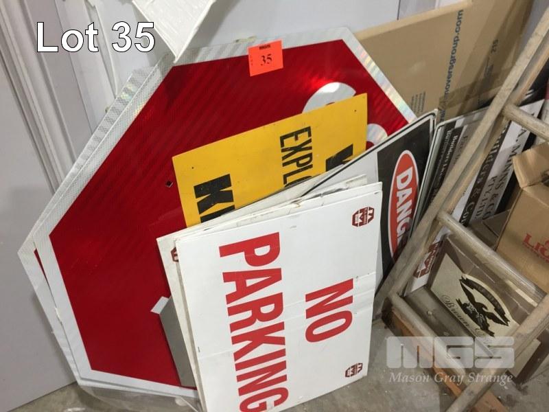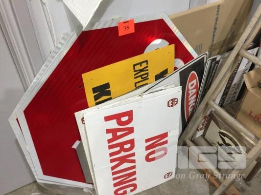 QUANTITY ASSORTED ROAD SIGNS, STOP, GIVE WAY, NO PARKING, EXPLOSIVES, ETC