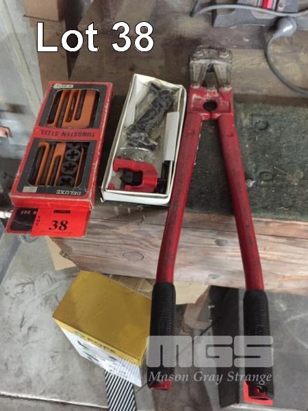 TAP & DIE SET, 12 PIECE, PIPE FLARING TOOL, BOLT CUTTER, 600mm