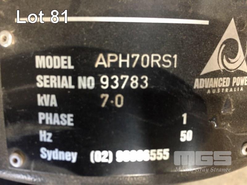 GENSET, ADVANCED POWER WORK MATE MOD: APH70RSI 7KVA, 2 x 240V OUTLETS POWERED BY HONDA GX340 PETROL MOTOR
