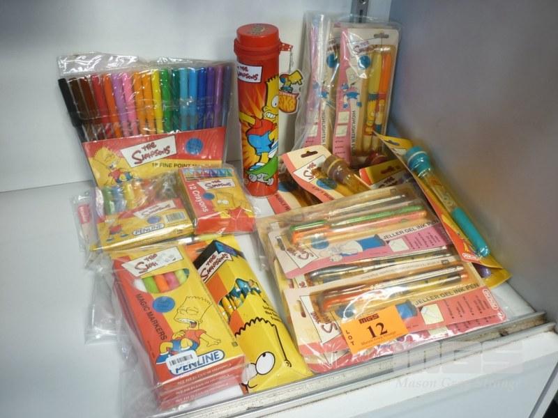 ASSORTED SIMPSONS STATIONERY, PENS, MARKERS, CRAYONS, PENCILS