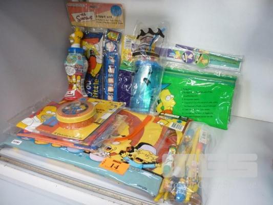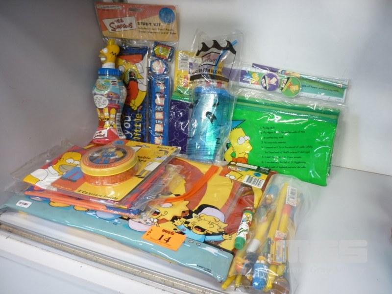 ASSORTED SIMPSONS COLLECTABLES, DRINK BOTTLES, PENS, STUDY KIT, PENCIL CASES, BAG & COASTERS